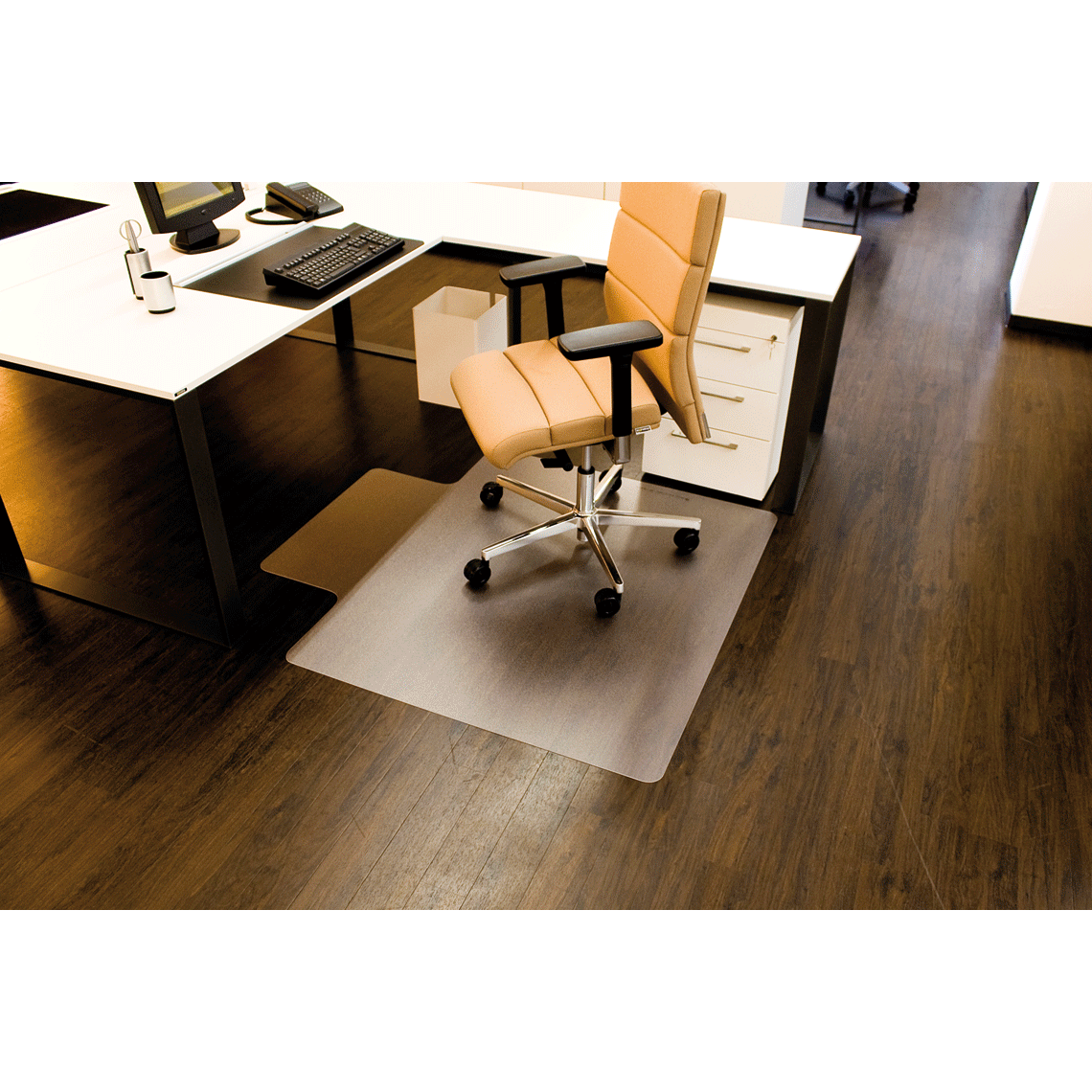 - Schützen Parkett und Laminat vor Schmutz und Alltagsbelastungen von Schuhen und Drehstühlen