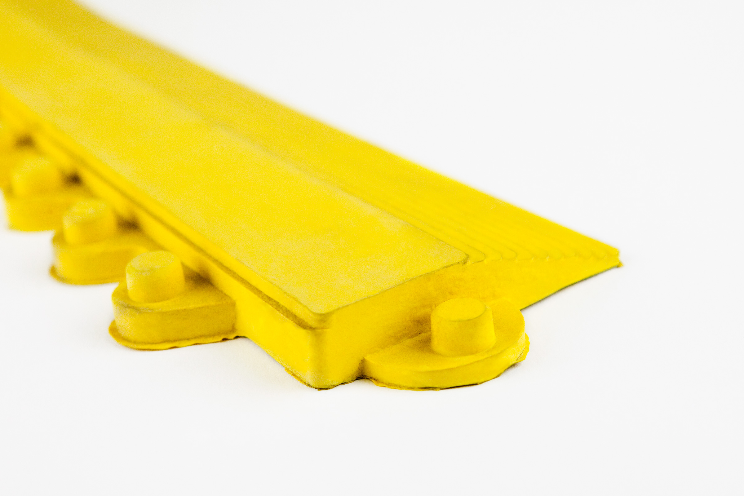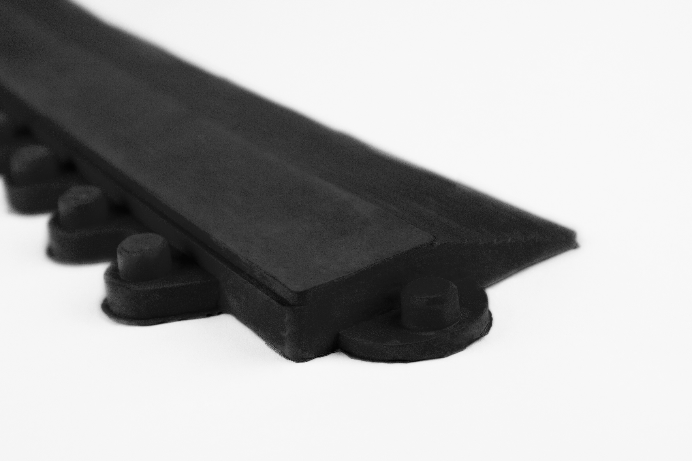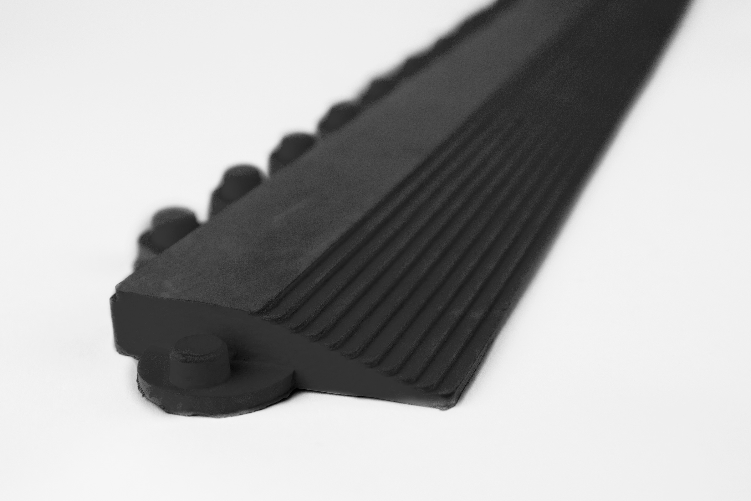 Abgeschrägte Leiste für die Yoga Allround Arbeitsplatzmatte. Die Leiste inklusive Ecke wird einfach an den Seiten der Yoga Allround befestigt. So wird die Stolpergefahr minimiert und eine sicherere Begehung der Matte gewährleistet. Diese "männliche" Variante mit Noppen passt auf den Seiten der Yoga Allround Matte mit Löchern.