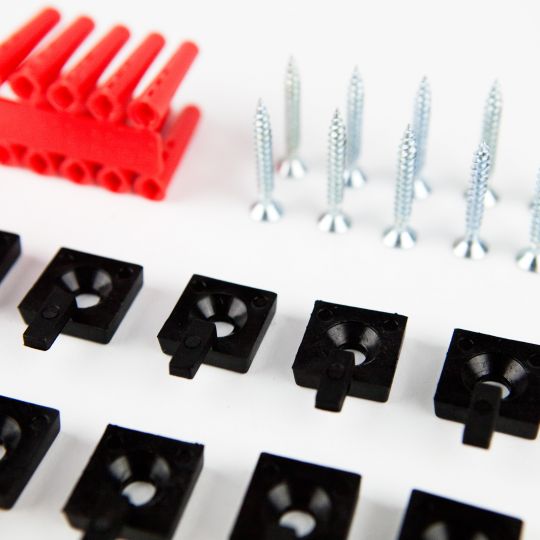 Geliefert wird die Bodenbestigung aus PVC- Material im praktischen 10er- Set.